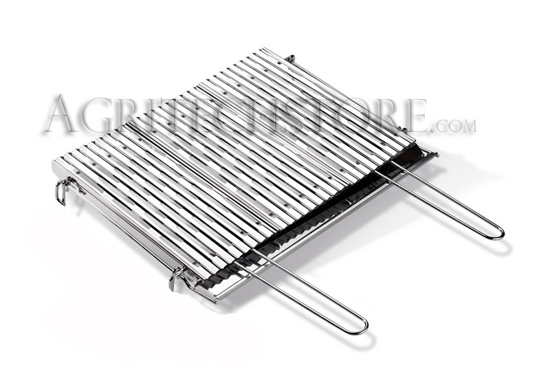 Cet accessoire exceptionnel Ferraboli breveté, entièrement en acier inoxydable, proposé par Agritechstore.com, utilisé pour cuisiner avec moins de matières grasses, la viande ne brûle pas, la graisse laissée par les plats sont rassemblés en partie grâce à l'inclinaison vers l'avant.