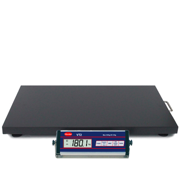 Structure de la plate-forme Balance VT2 fer avec métal tubulaire peint avec de pesage en acier inoxydable de plaque lavable. Avec câble de l'indicateur à être placé sur la surface de travail ou fixé au mur avec un support réglable. Câble de connexion à la base avec un indicateur de poids de 2 mètres. Indicateur de poids en aluminium anodisé avec le support de montage mural. 4 chiffres LCD avec 25mm facile à lire, avec 5 touches clavier étanche. Alimentation de la batterie du contrôleur rechargeable ou alimentation externe.