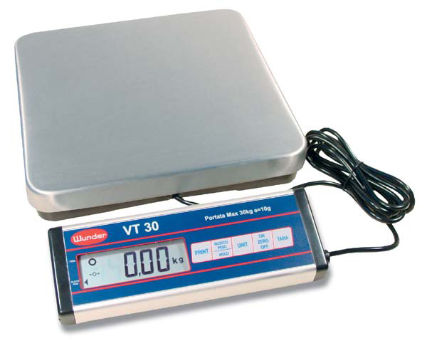 Échelles de la série-de-chaussée à usages multiples de l'échelle du laboratoire VT30-60 proposés par Agritechstore, compact, peu encombrant, robuste pour de nombreuses utilisations. Idéal pour les colis pesant, caisses de légumes, et toutes sortes d'objets. Pour le, peu encombrant compact peut être utilisé sur des chariots mobiles. Câble de 2 mètres pour positionner l'indicateur sur le banc ou sur le mur avec support réglable. Structure en base en métal peint avec de pesage en acier inoxydable de plaque lavable. Indicateur de poids en aluminium anodisé avec le support de fixation à la paroi. Visualiseur câble. 5 chiffres LCD avec 25mm facile à lire, avec 5 touches clavier étanche. Piles ou alimentation externe.
