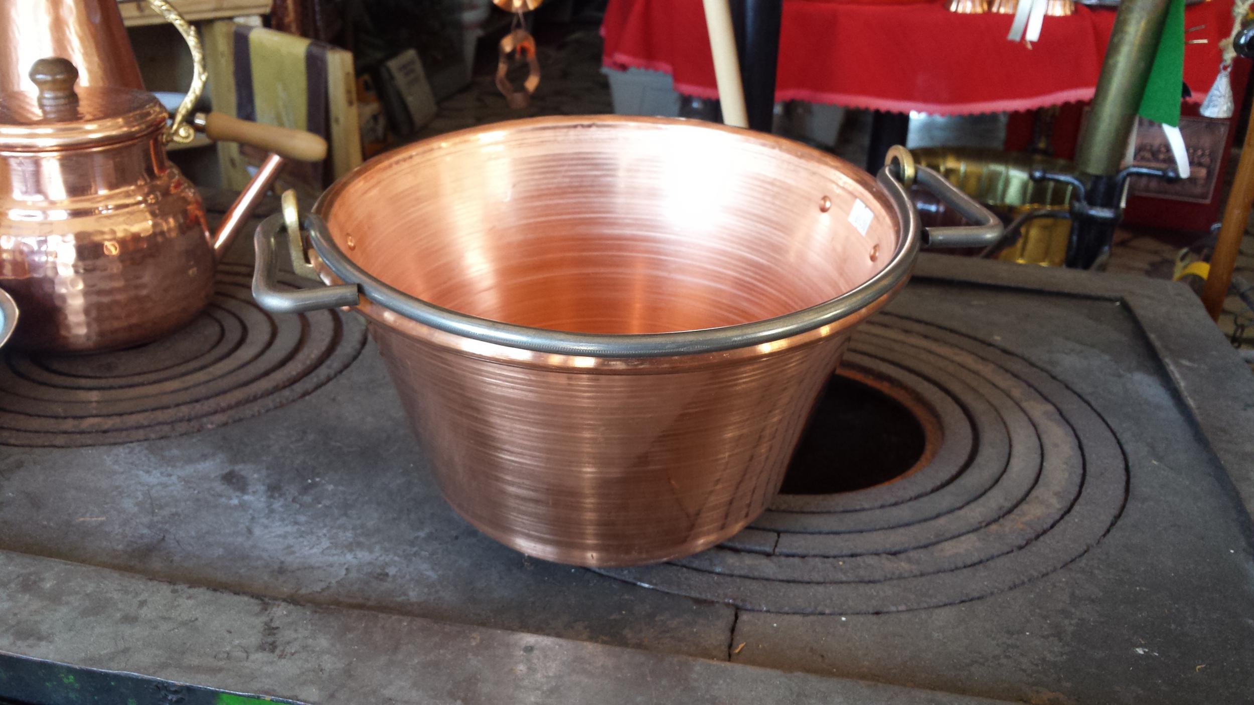 POT EN CUIVRE À FOND CLASSIQUE AVEC POIGNÉE EN ARC , il n'y a pas de polenta qui ne soit pas fabriquée dans un pot en cuivre. Depuis des siècles, la tradition veut qu'un chaudron en cuivre non étamé soit utilisé pour cuisiner sur des cheminées ou des poêles ; aujourd'hui ce chaudron vous donne le
