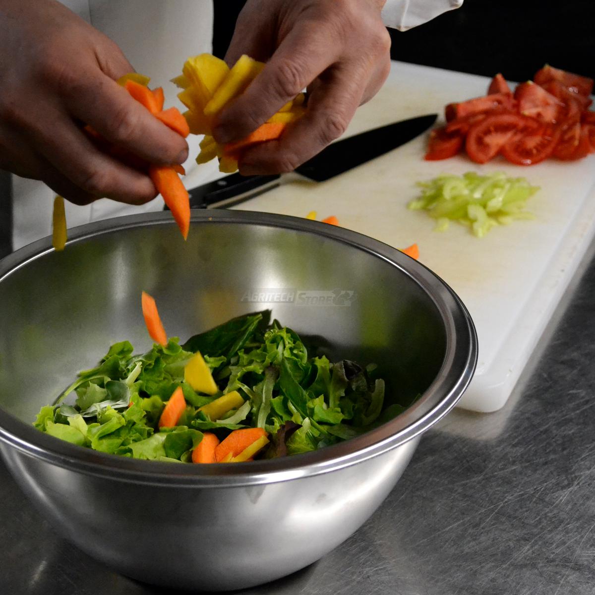 Ce nouveau produit proposé par Agritech s'intègre parfaitement dans l'environnement de la cuisine professionnelle pour offrir un soutien valable aux chefs lors de la préparation de diverses recettes, son intérieur incurvé le rend idéal pour mélanger, mélanger et pétrir ainsi que pour assurer un nettoyage simple et facile.