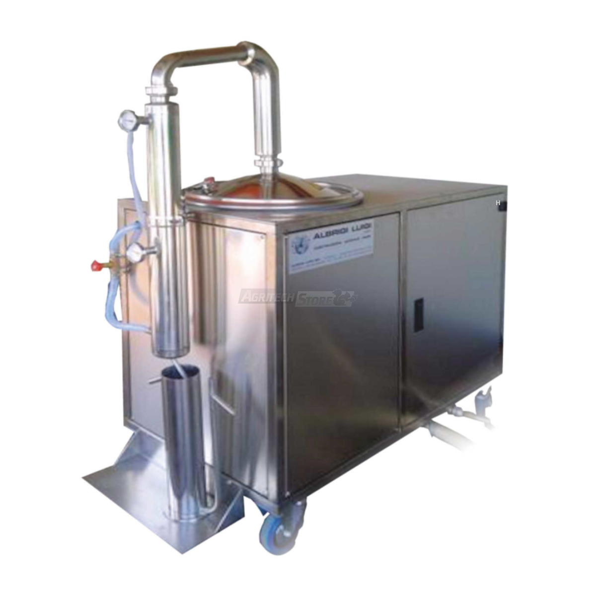 Grâce au générateur de vapeur intégré au distillateur Drago Pro 150 lt, il est possible de réduire les temps de distillation, nous permettant d'entrer dans la phase de distillation après seulement 5 à 10 minutes à partir de la phase de chargement.