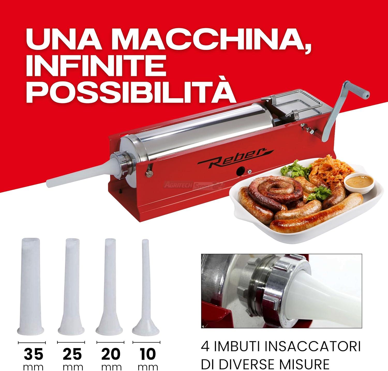 • L'ensachage Reber sont accompagnés d'une série de quatre entonnoirs de remplissage de différentes tailles pour tous les types de saucisses.
