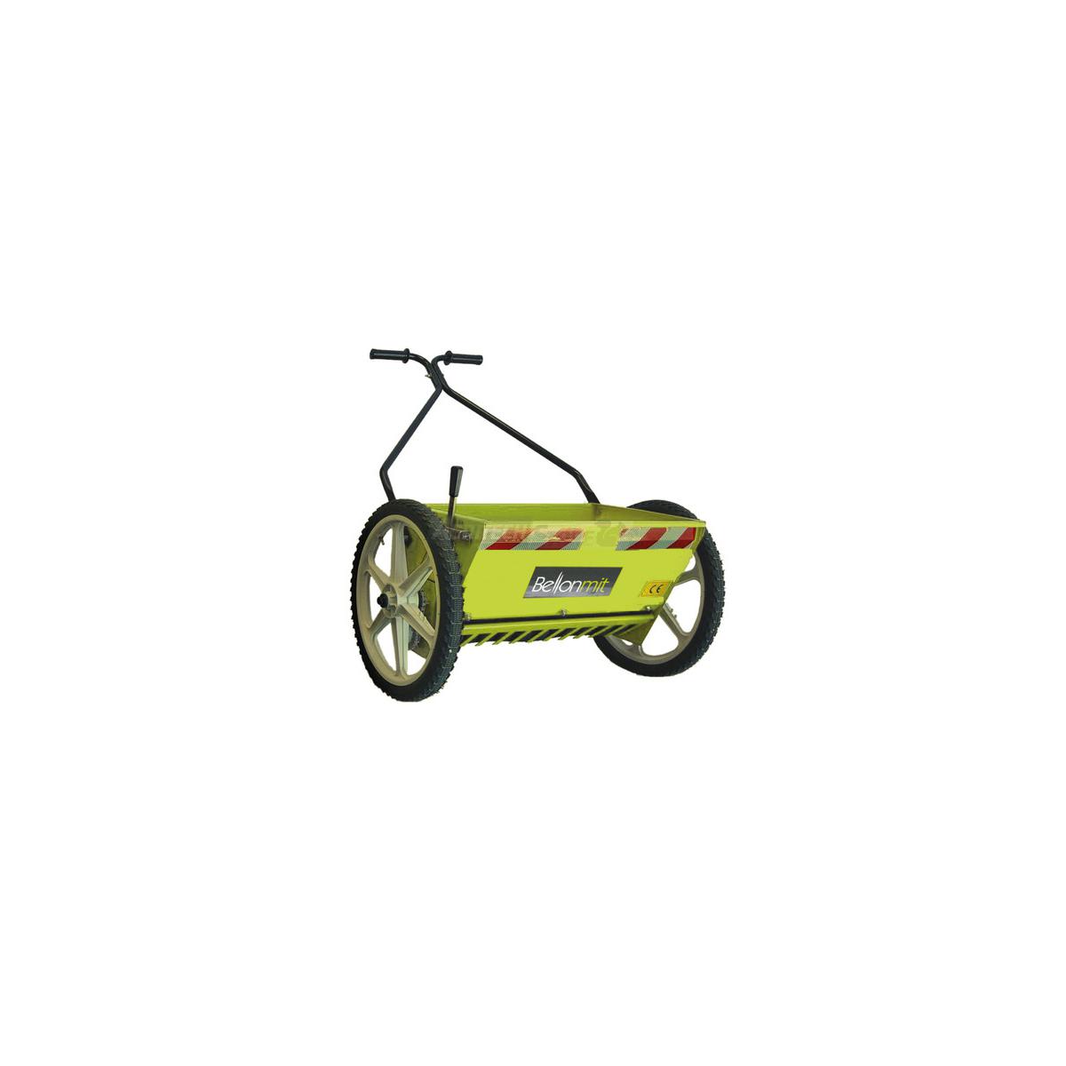 Conçu pour être poussé à la main, le SSM se distingue par son système de dépose de produit commandé par un levier gradué à quatre positions, permettant un réglage précis de la quantité distribuée. Le double rouleau interne assure une manipulation efficace du sel humide, tandis que la roue libre intégrée empêche tout déversement accidentel de produit pendant le déplacement.