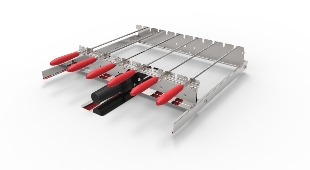 Fonctionnement de la batterie du moteur 6 brochettes tournent en permettant simultanément à la nourriture à rôtir uniformément.