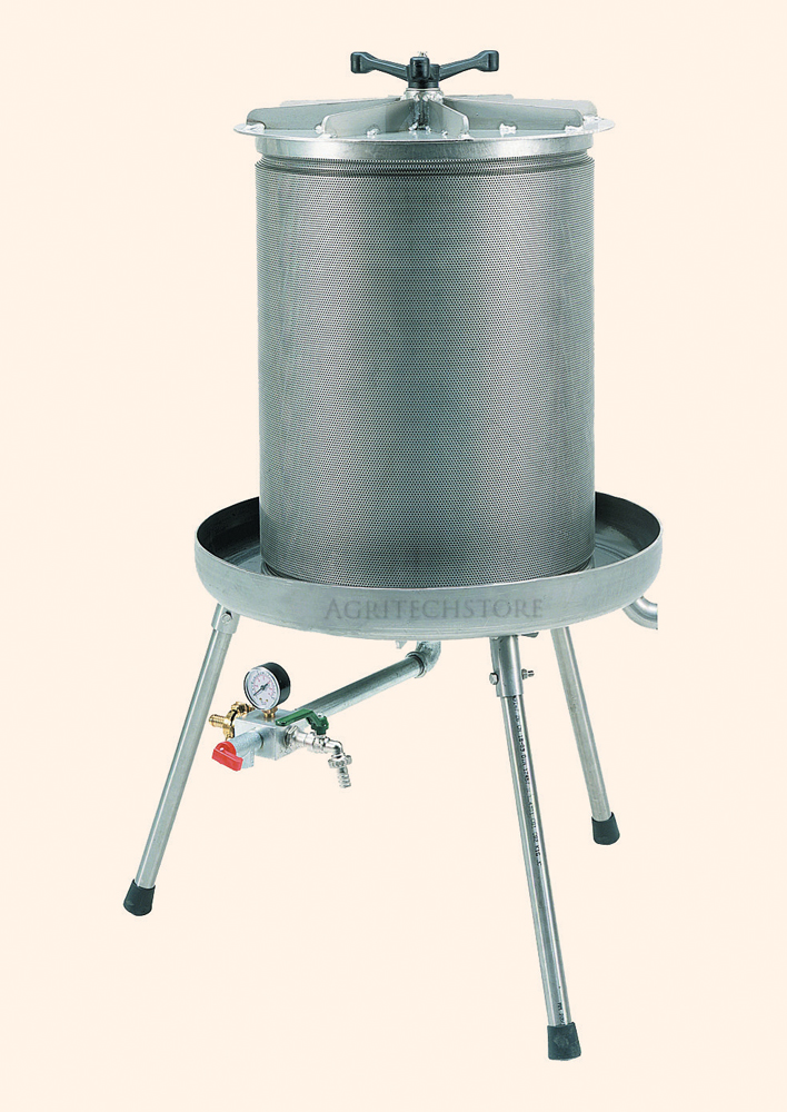 Idropressa 40 litres en acier inoxydable De Agritechstore, un nouveau système et simple pour presser, en profitant de la pression de l'eau.