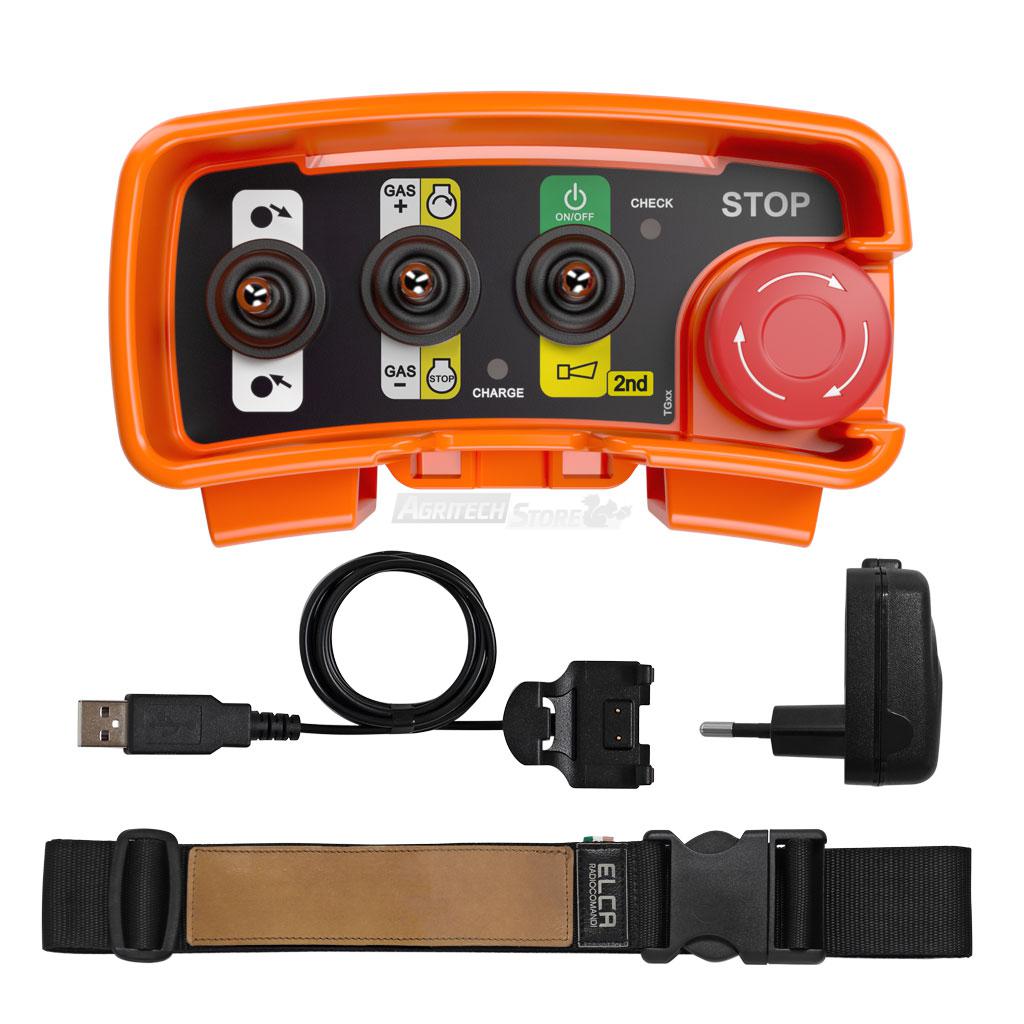 Complet avec panneau à boutons-poussoirs, chargeur, adaptateur et sangle dédiée.