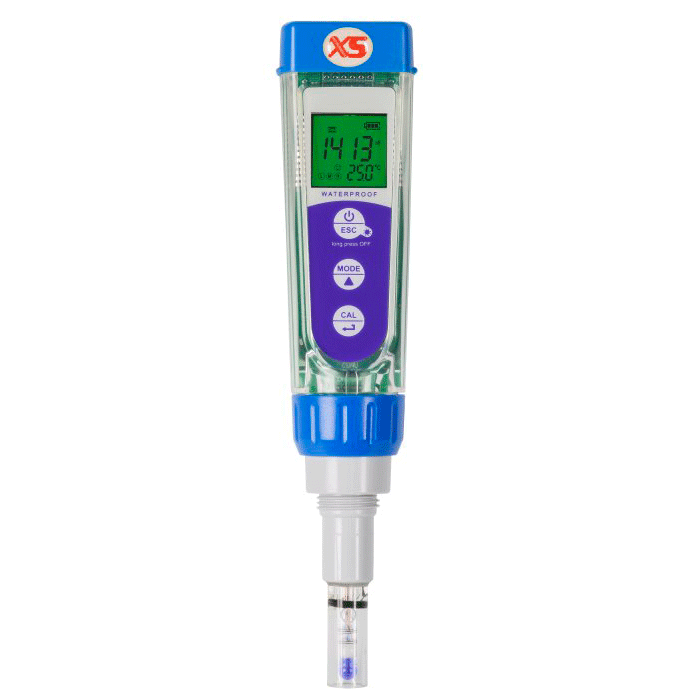 Thermomètre conductimètre portable et étanche IP67. Avec microprocesseur et l'électrode combinée interchangeables haute durabilité. Grand écran LCD avec 3 couleurs de tampons utilisés pour l'étalonnage et la stabilité de la mesure.