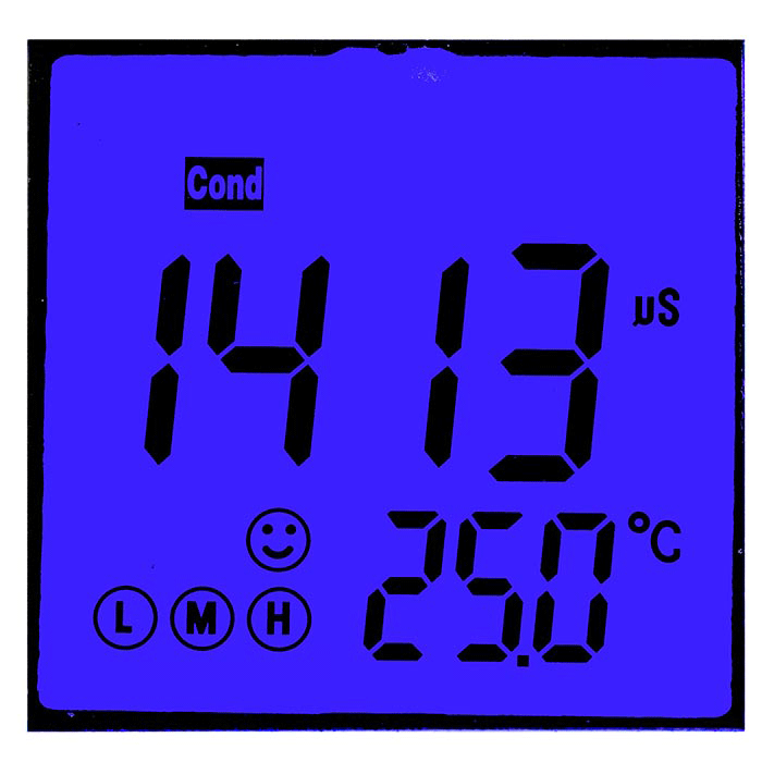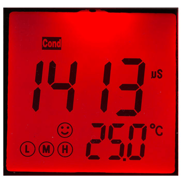 Bouton d'étalonnage à 3 points avec 3 valeurs de choix standard entre 84 1413 et 12,88 M me MS. Température lecture. Compensation automatique de température avec TR = 20/25 ° C et TC du facteur réglable = 0,00 ... 4,00% / ° C