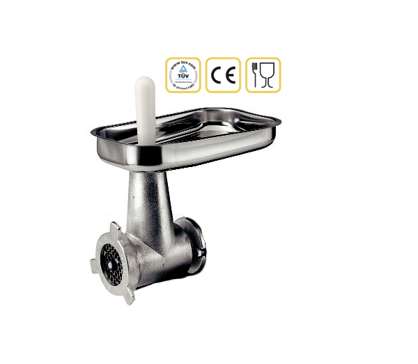 Le hachoir à viande équipé en standard Reber une plaque avec trous de 6 mm.