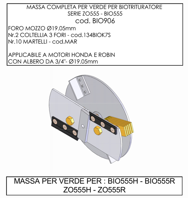 kit en option, masse verte adapté au broyeur de jardin ZO555H, ZO555R, BIO555H, BIO555R. En remplaçant le système de coupe standard, cette option permet de traiter des matériaux plus humides .