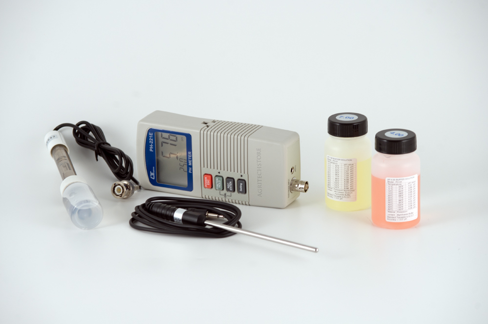 PH-mètre PH-221E PH-mètre professionnel, proposé par Agritechstore, avec l'électrode et la sonde de température, avec des solutions d'étalonnage, y compris PH4 et PH7.