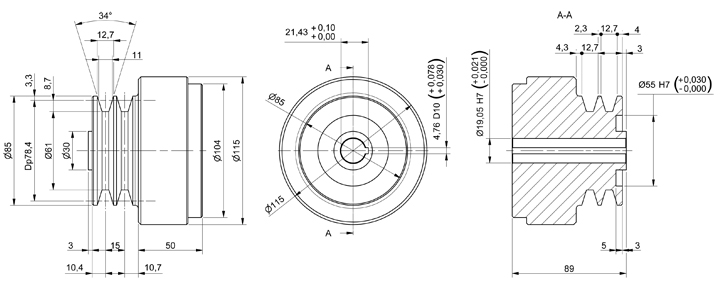 Poulie à friction Ø 77 mm. Double gorge A La poulie d’embrayage automatique de série avec arbre 16,04 est utilisée sur les moteurs essence et diesel avec une puissance jusqu’à 8 CV
