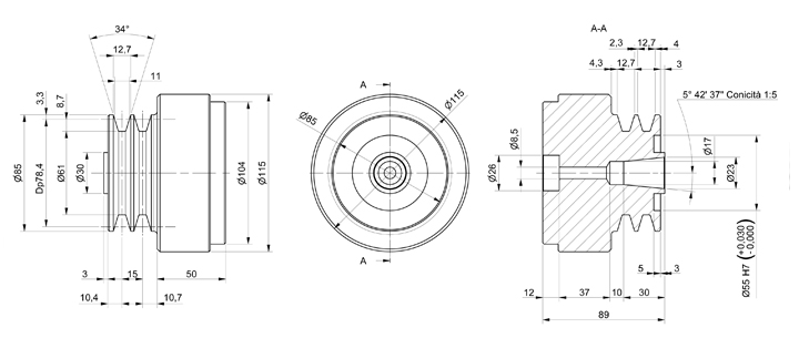 Ils sont construits avec différents arbres de diamètres et gorges pour courroies trapézoïdales de section Z, A, B et C sur demande, ils peuvent être alimentés avec des mesures spéciales et des puissances différentes sur l'indication du type de moteur.