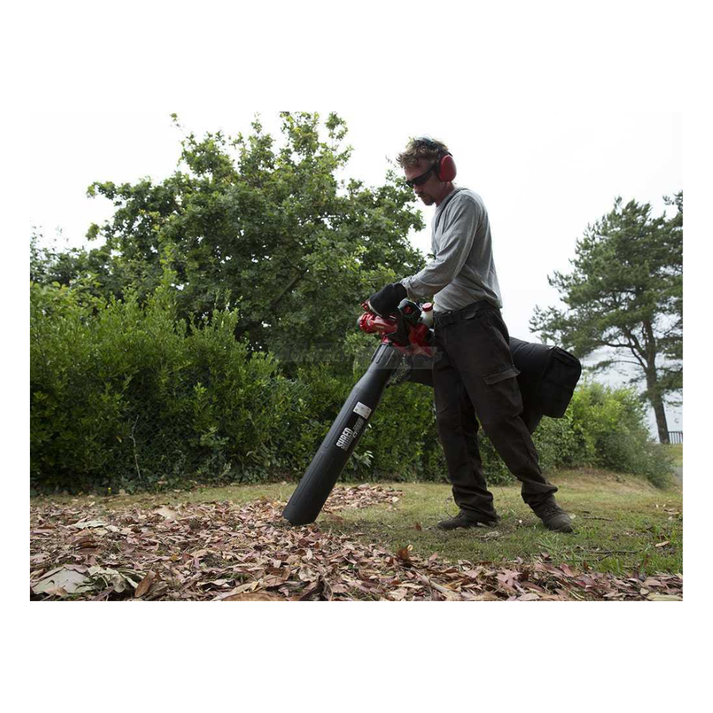 Modèle souffleur-aspirateur-broyeur de feuilles extrêmement polyvalent équipé de trois lames en acier trempé capables de déchiqueter de gros tas de feuilles qui peuvent être récupérées dans le sac fourni.