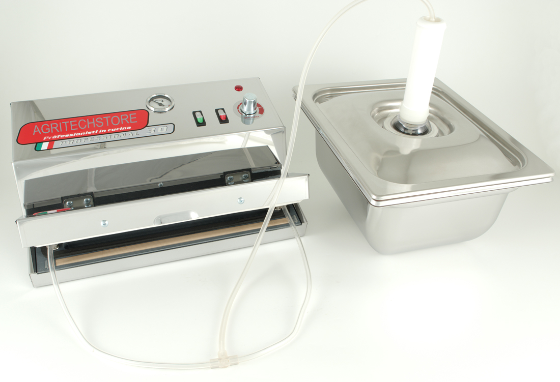 Il permet, en combinaison avec l'acier inoxydable de conteneurs à vide fournie par nous, emballage sous vide directement dans le Gastronorm chaude également les Articles alimentaires que pour la cohérence ne peut être écrasé et qui, autrement, serait de limiter l'utilisation de la préservation du vide.